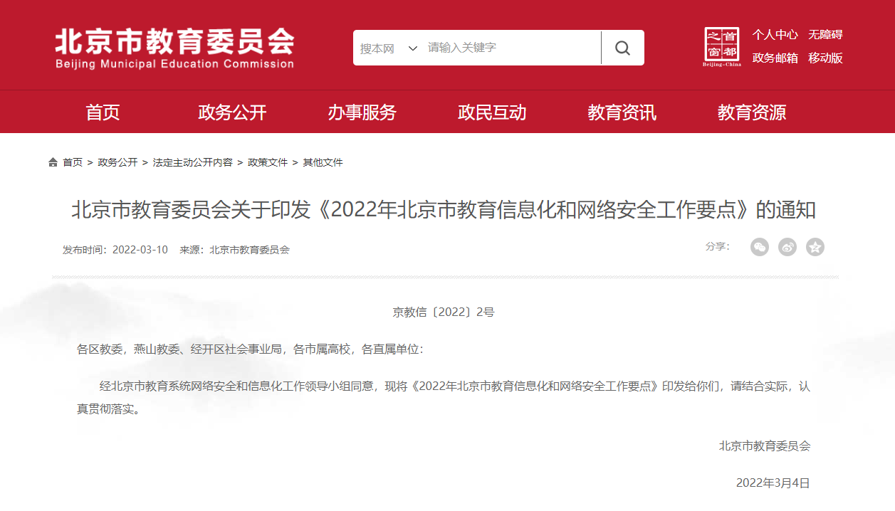 | 3月11日,北京市教委印发了《2022年北京市教育信息化和网络安全工作要点》,明确提出加快教育新型基础设施建设、加快人工智能在教育领域的创新应用,积极探索基于人工智能的新型教学模式。
