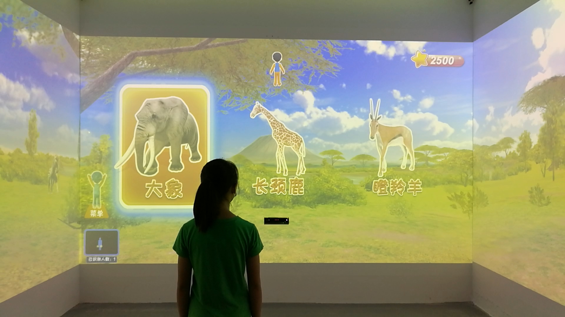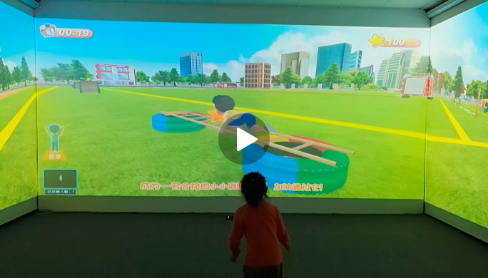 体感技术,也叫做动作识别技术、手势识别技术。是通过3D深度摄像头识别人体骨骼和三维空间,使用户通过肢体动作实现凌空操控,可以在真实的环境里面与虚拟影像进行互动,使学生的视觉、听觉和体能都得到充分的锻炼。